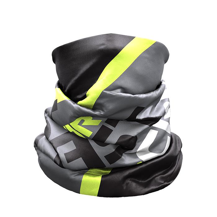 Višenamjenski buff (kapa, pokrivalo za vrat, traka za znoj…) s uzorkom yellow fluo, izrađen od Primaloft tkanine bez šavova. Primaloft je vrsta tkanine koja čuva toplinu, ali prilikom intenzivne fizičke aktivnosti i znojenja ne ostavlja neugodan osjećaj vlažnosti na glavi i vratu.